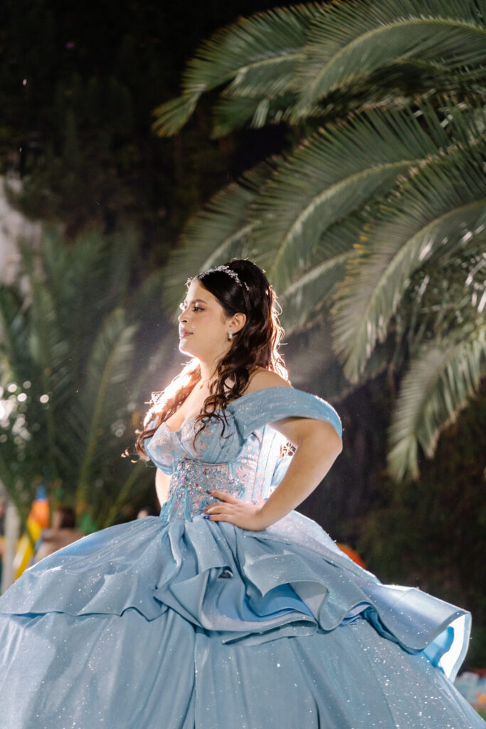 Cada rincón fue aprovechado para crear imágenes impactantes que reflejan la esencia de los XV años de Belén.
